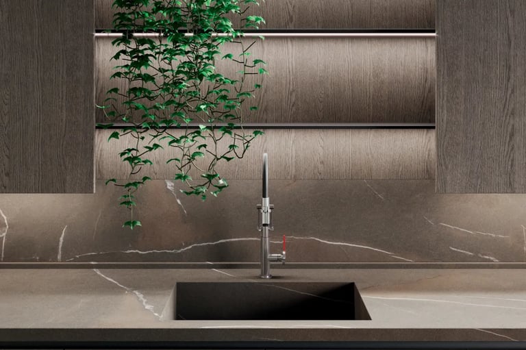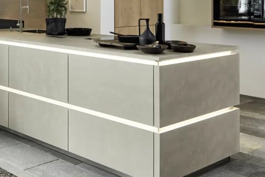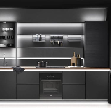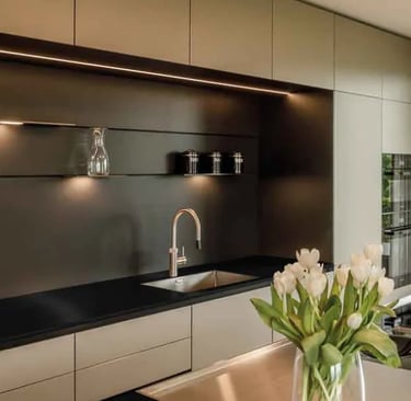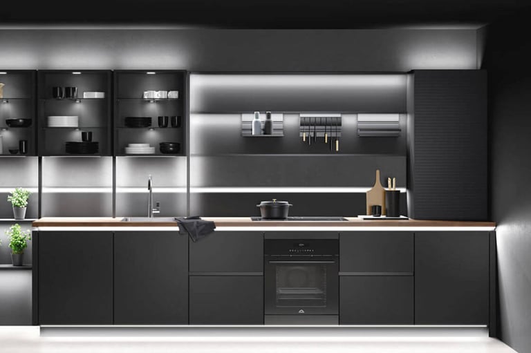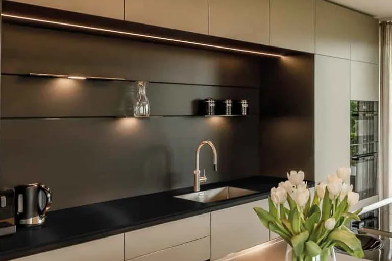 Unterbauleuchten: Montiert unter den Hängeschränken, um die Arbeitsflächen direkt zu beleuchten.