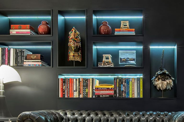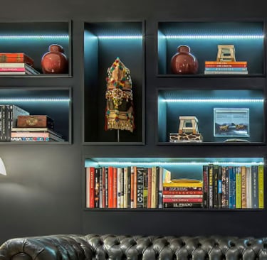Regalleuchten: Horizontale oder Vertikale Beleuchtung, die speziell für offene Regale konzipiert sind, um Gegenstände zu betonen.