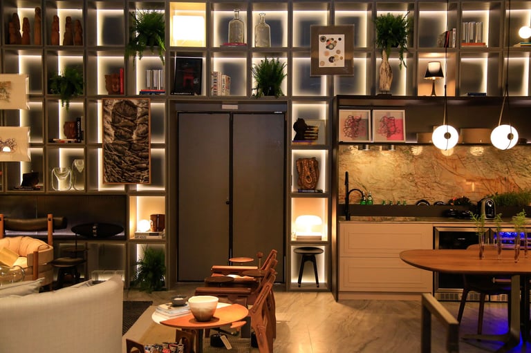 Innen-Schrankbeleuchtung: In Schränken installierte Lichter, mit Touchschalter, Bewegungsmelder oder mit dimmbarer Fernbedienung für bessere Sichtbarkeit und Ambiente.