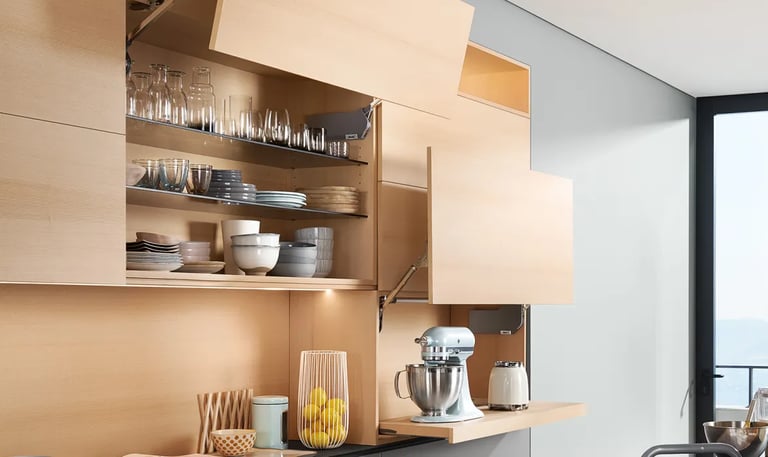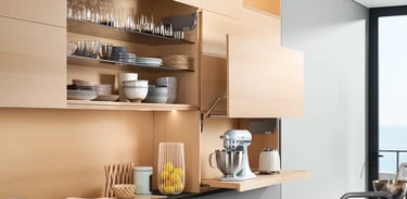 Wir bieten eine Vielzahl von Hänge-, Unter-, Eck- und Oberschränken an, damit du deinen Stauraum optimal nutzen kannst. Einige unserer Systeme öffnen sich sogar automatisch, ohne dass du dafür deine Hände brauchst. Bei Küchen Design Roban können wir solche Lösungen in nahezu jedem Raum installieren und so für ein durchgehend harmonisches Wohnbild sorgen.