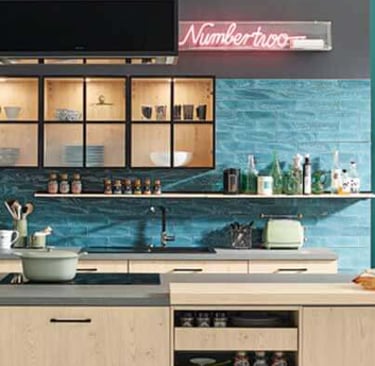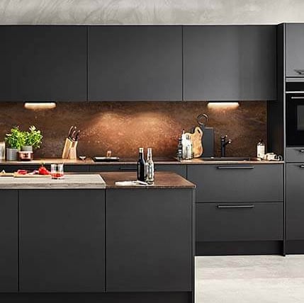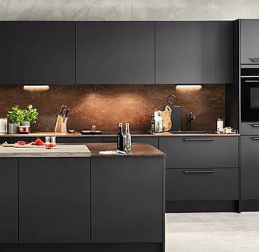 Verleihe deiner Küche Charakter mit unseren stilvollen Küchenrückwänden, erhältlich in verschiedenen Materialien wie Laminat, Glas, Neolith oder Edelstahl.