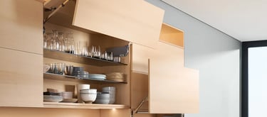 Hochwertige Schränke werden bei uns nur mit Tür-Selbsteinzug und/oder integrierten Bremsen ausgestattet. Diese Mechanik sorgt dafür, dass die Türen sanft und geräuschlos schließen. Dies verhindert ein abruptes Zuschlagen, schützt die Schrankstruktur, Bedienkomfort und erhöht die Langlebigkeit deiner Küche enorm.