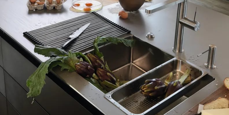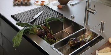 Die integrierte Arbeitsfläche bietet zusätzlichen Platz für die Zubereitung von Speisen und sorgt für eine nahtlose Integration von Spüle, Schneidebrett und Abtropffläche. Mit ihrem innovativen Design kann die Spüle problemlos an verschiedene Arbeitsabläufe angepasst werden, was sie zu einem unverzichtbaren Werkzeug für moderne Küchen macht.