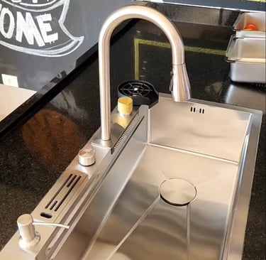Zusätzlich zeichnet sich die Workstation-Spüle durch ihre präzise Passform aus, die eine einfache Installation gewährleistet und sich harmonisch in verschiedene Küchenlayouts einfügt. Mit ihrem stilvollen, minimalistischen Design und den hochwertigen Materialien sind sie sowohl ein praktisches Werkzeug als auch ein elegantes Designelement in jeder modernen Küche.