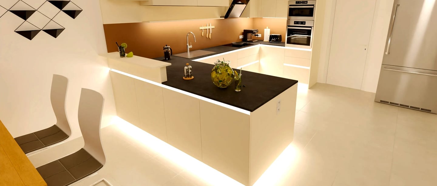 Eine Einbauküchenkreation, die modernes Design mit innovativer Technologie vereint.