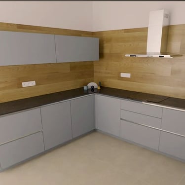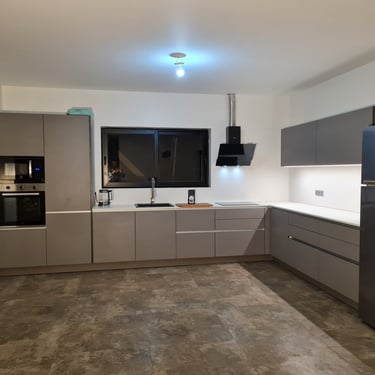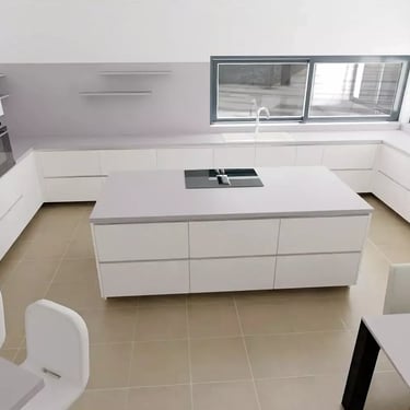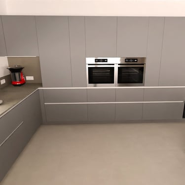 Design Küche grifflos, Fehgrau