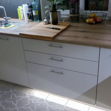 Aus Kostengründen wurde hier eine Arbeitsplatte aus 18 mm Laminat verwendet.