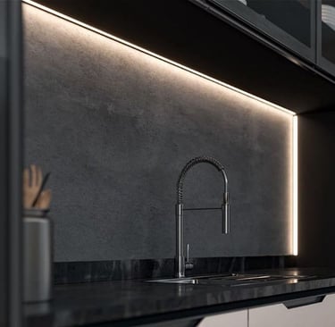 LED-Streifen: Flexible Lichtstreifen, die entlang von Schränken, Theken oder Bodenleisten angebracht werden können, um eine stimmungsvolle Atmosphäre zu schaffen.