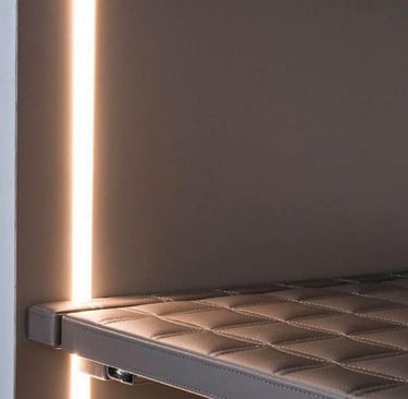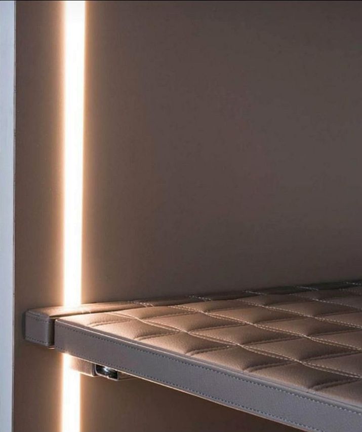 Innen-Schrankbeleuchtung: In Schränken installierte Lichter, mit Touchschalter, Bewegungsmelder oder mit dimmbarer Fernbedienung für bessere Sichtbarkeit und Ambiente.