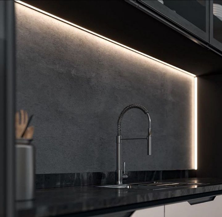 Unterbauleuchten: Montiert unter den Hängeschränken, um die Arbeitsflächen direkt zu beleuchten.