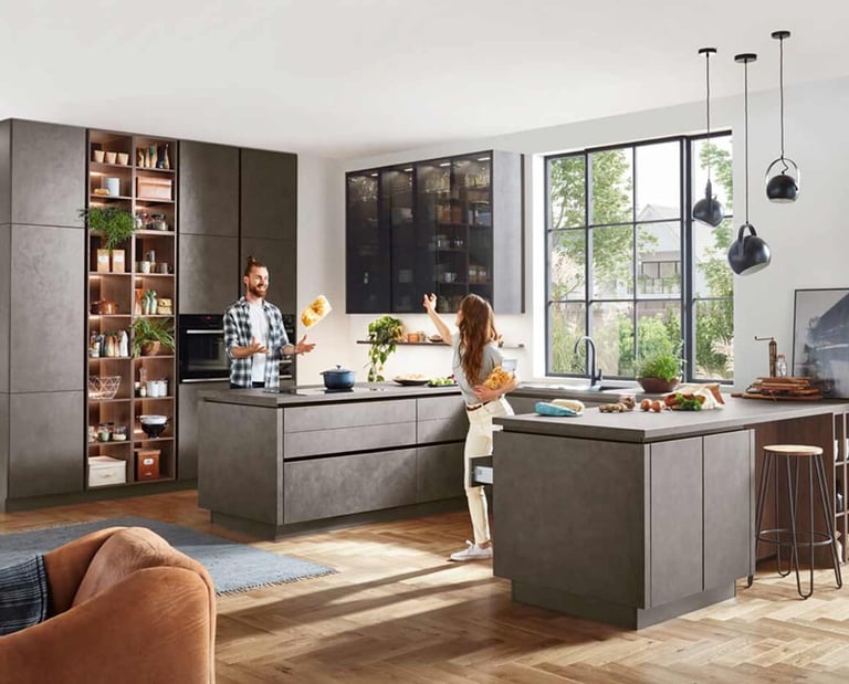 Wir planen, produzieren und montieren alles. Unsere große Auswahl an Fronten und Oberflächen ermöglicht es, deinem Zuhause einen einheitlichen Stil oder einen individuellen Look zu verleihen.