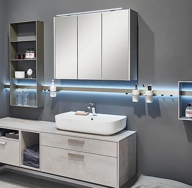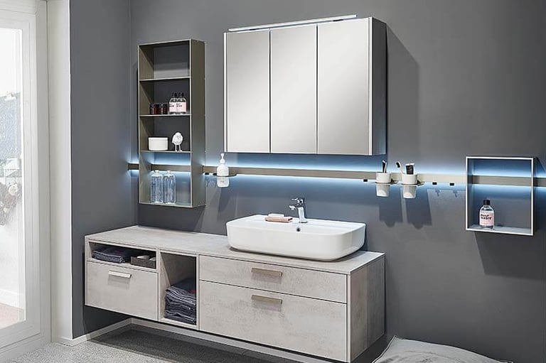 Innen-Schrankbeleuchtung: In Schränken installierte Lichter, mit Touchschalter, Bewegungsmelder oder mit dimmbarer Fernbedienung für bessere Sichtbarkeit und Ambiente.
