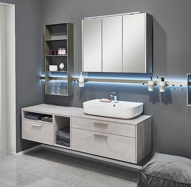 Innen-Schrankbeleuchtung: In Schränken installierte Lichter, mit Touchschalter, Bewegungsmelder oder mit dimmbarer Fernbedienung für bessere Sichtbarkeit und Ambiente.