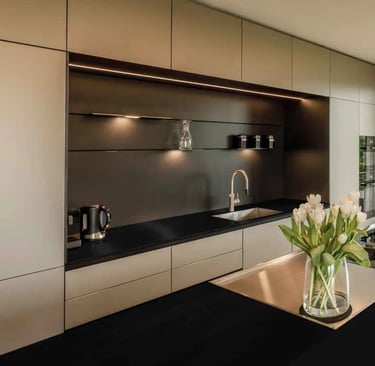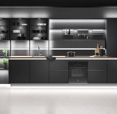 Unterbauleuchten: Montiert unter den Hängeschränken, um die Arbeitsflächen direkt zu beleuchten.