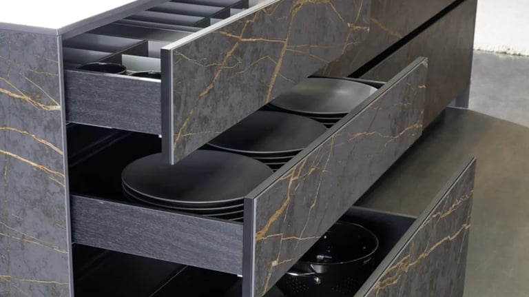 geöffnet werden können. Durch einfaches Berühren öffnen sich Türen oder Schubladen automatisch.