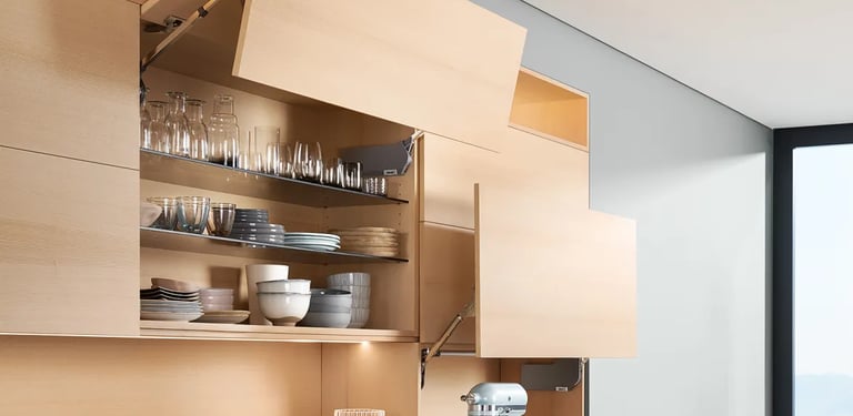 Wir bieten eine Vielzahl von Hänge-, Unter-, Eck- und Oberschränken an, damit du deinen Stauraum optimal nutzen kannst. Einige unserer Systeme öffnen sich sogar automatisch, ohne dass du dafür deine Hände brauchst. Bei Küchen Design Roban können wir solche Lösungen in nahezu jedem Raum installieren und so für ein durchgehend harmonisches Wohnbild sorgen.
