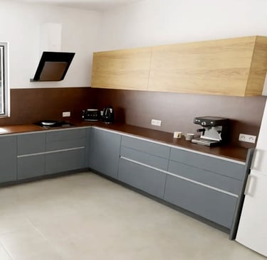 Eine der größten Stärken der L-förmigen Küche ist ihre Effizienz. Die Form schafft eine natürliche Arbeitsdreieck-Konfiguration, die das Kochen erleichtert. Es gibt genügend Platz für mehrere Personen, was diese Küchenform ideal für Familien und Menschen, die gerne gemeinsam kochen, macht. Zudem bietet sie viel Stauraum, da Schränke und Geräte entlang der Wände angeordnet werden können.